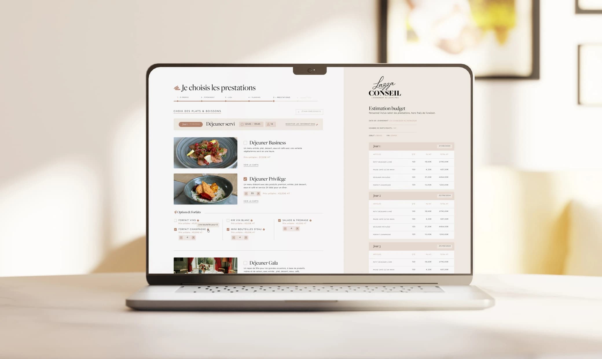 Fort de son expérience commerciale dans le domaine du traiteur et des lieux de réception, c’est tout naturellement que Lazza Conseil a décidé d’allier les deux.