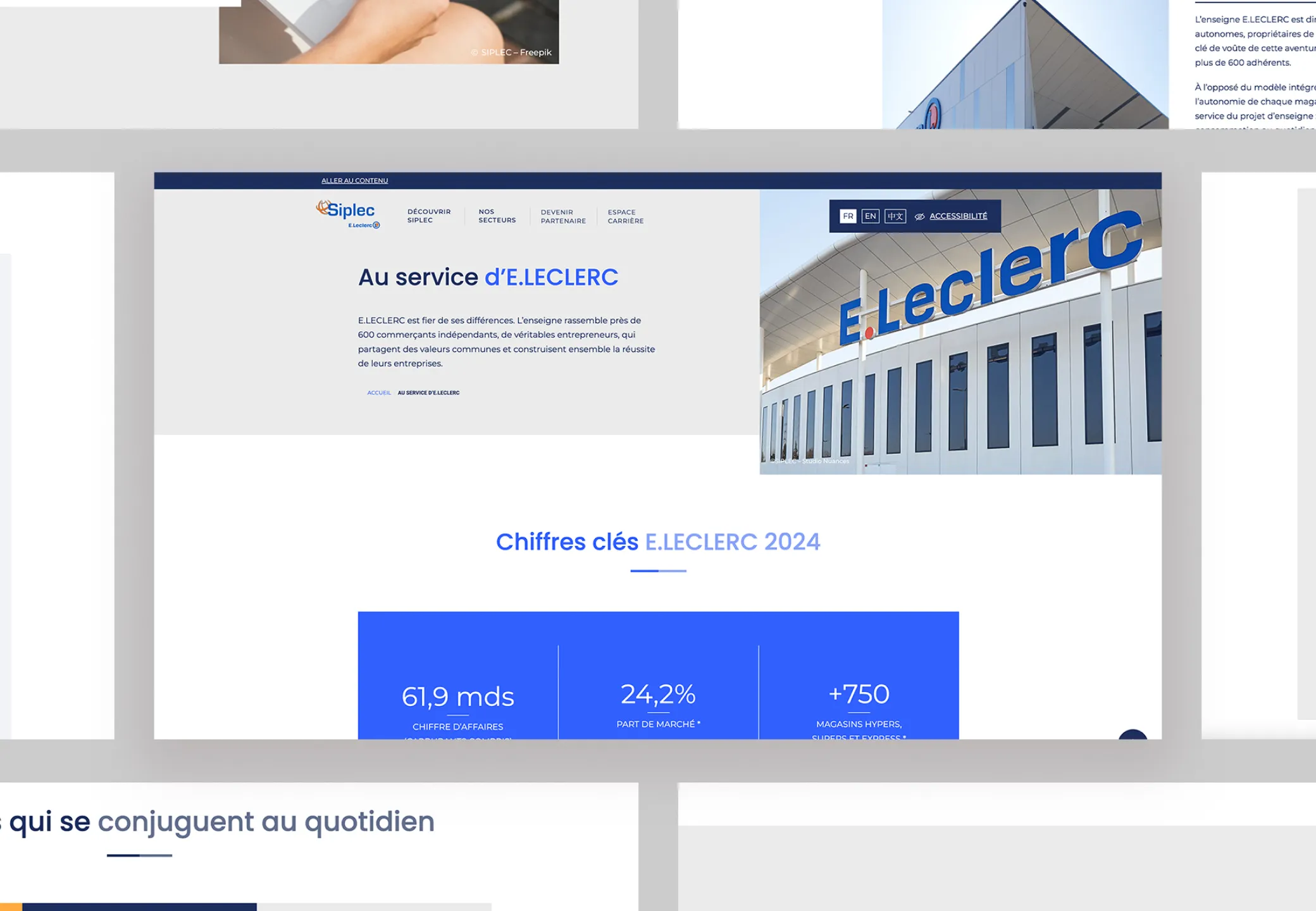 Siplec, centrale d’achats du Groupe E. Leclerc a souhaité refondre son site vitrine, afin d’adresser l’ensemble de ses cibles, et présenter l’étendue de ses activités.